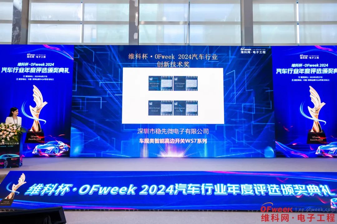深圳市穩(wěn)先微電子有限公司(簡稱“穩(wěn)先微”)攜高邊智能開關(guān)WS7系列產(chǎn)品亮相展會現(xiàn)場,憑借產(chǎn)品創(chuàng)新性與技術(shù)優(yōu)勢,獲得現(xiàn)場專業(yè)觀眾的高度關(guān)注與肯定。在同期舉辦的OFweek 2024中國國際汽車電子大會中,穩(wěn)先微以高可靠性、高穩(wěn)定性的智能高邊開關(guān)產(chǎn)品榮獲“2024汽車行業(yè)創(chuàng)新技術(shù)獎”,這一榮譽是對穩(wěn)先微在汽車電子領(lǐng)域持續(xù)深耕、不斷突破的褒獎。